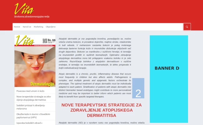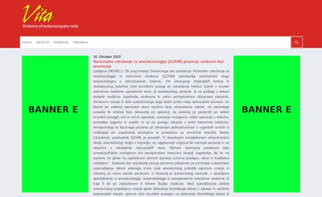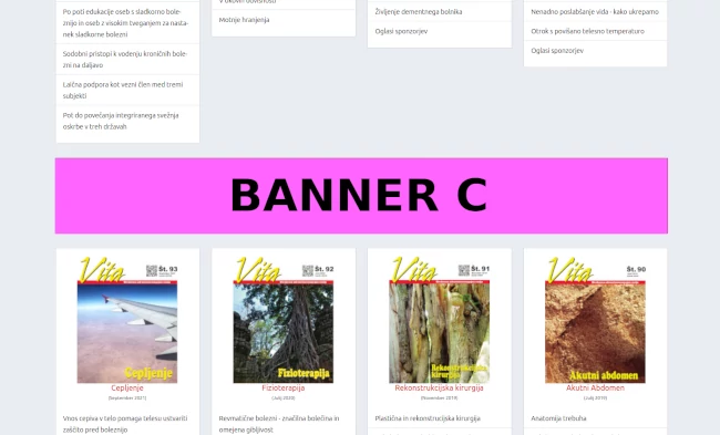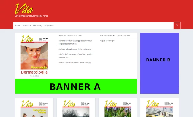 | Banner F (300x100 px) (samo veliki zasloni, samo izbrana številka revije Vita) | 20 evrov (na mesec) |
