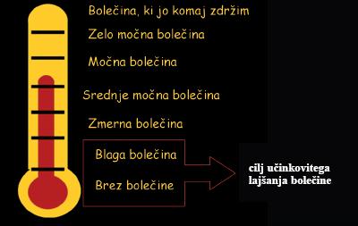Zdravnik z uporabo lestvice lahko ovrednoti uspešnost lajšanja bolečine. Če je zdravilo zmanjšalo jakost bolečine na 3 ali manj na številčni lestvici, je z zdravili dosegel zastavljeni cilj, to je blaga bolečina.