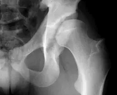 Slika 2. Utesnitev kolčnega sklepa – rentgenska slika