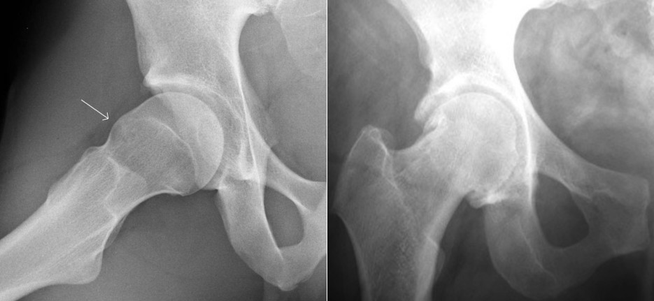 Slika 1. Displazija kolka – rentgenska slika: ponvica sklepa je plitva in strma.